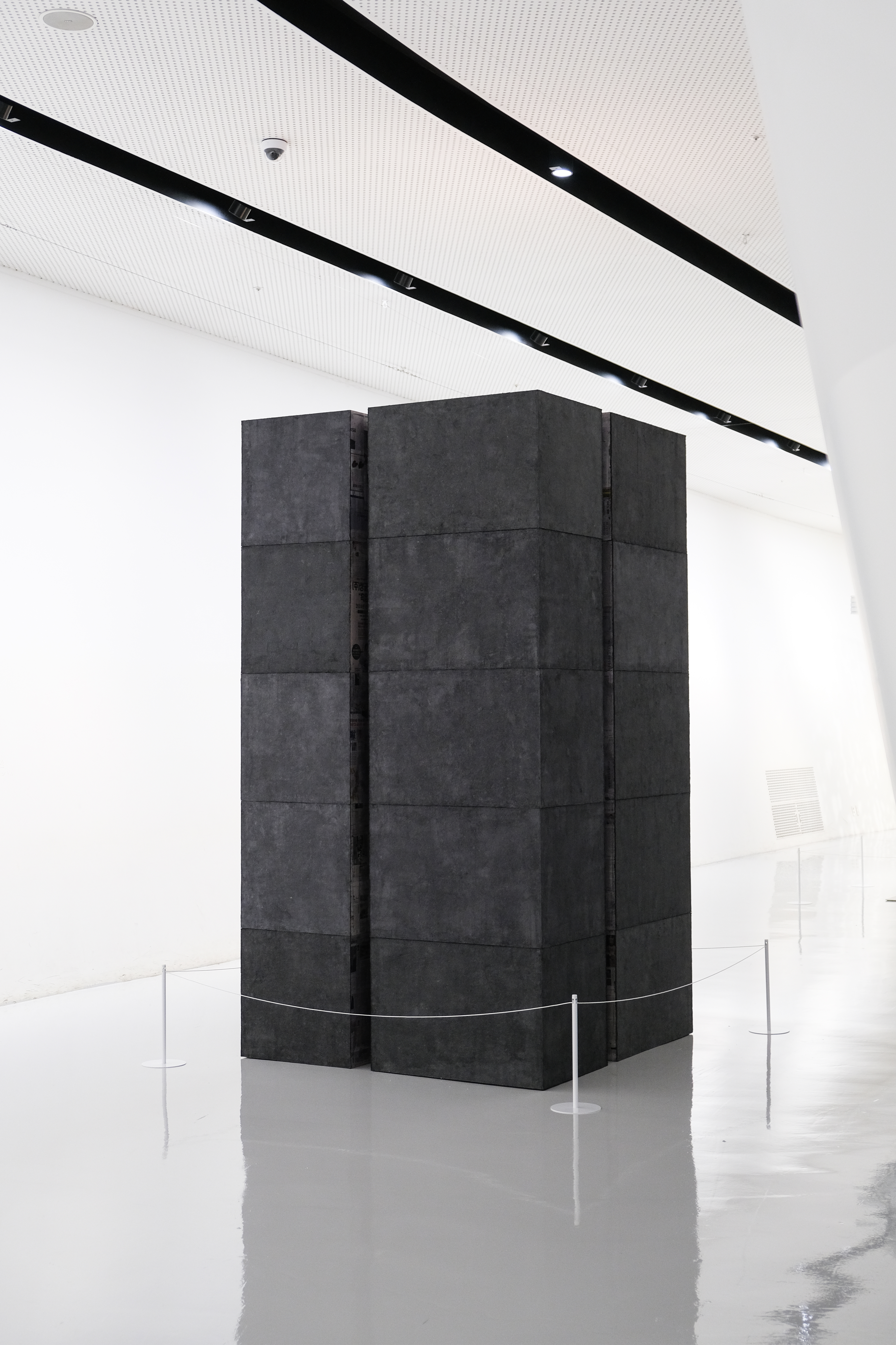 한옥에서 기둥은 단순히 하중을 지탱하는 구조물이 아니라, 자연과 사람이 만나는 공간을 정의하고, 내부와 외부 사이의 경계를 유연하게 조율하는 매개체다. 이 작품의 기둥 또한 그러한 철학을 품고 있으며, 틈을 통해 관객을 초대한다.